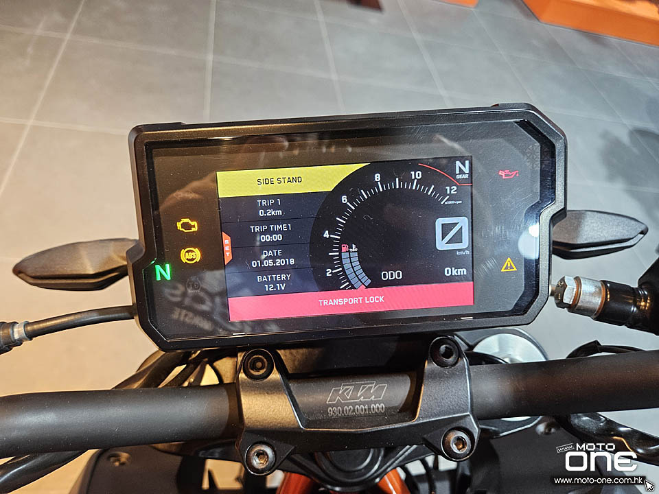今代DUKE 390還新增STREET(街道)及RAIN(濕地)模式給騎士選用,騎士可在5吋的TFT彩色屏幕上選擇。彩色儀錶也加入名為TRACK(賽道)模式屏幕,作用是放大轉數、圈速、車速、檔位等等的數字,進入這個顯示後,騎士才可使用彈射起步(LAUNCH CONTROL)。而手提電話連接車輛系統已成為大趨勢;手機駁通車輛後,可顯示來電號碼,也可以顯示左、右箭咀的導航提示。
