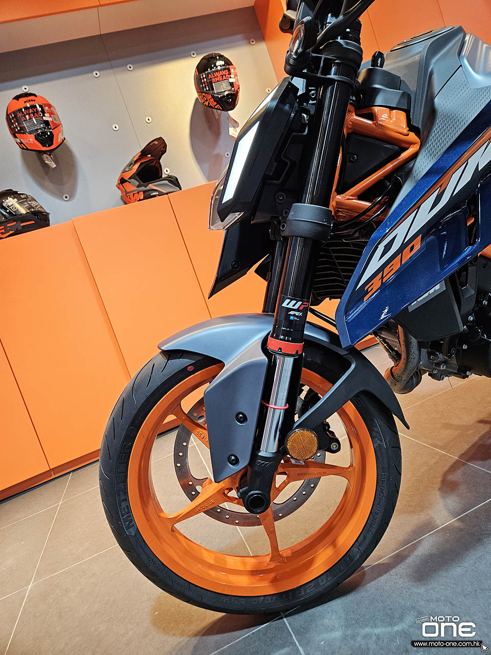 2024 新款KTM DUKE 390 採用 43mm WP APEX 倒立前叉,行程150mm,備有下壓及回彈調校。